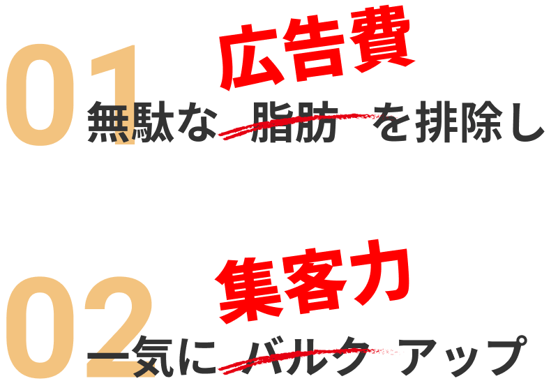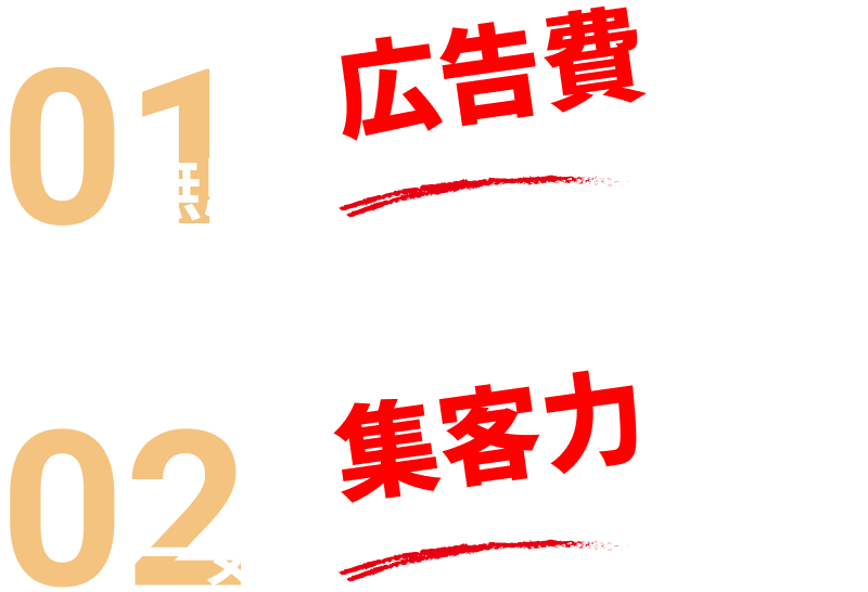 THE男のリスティングでは、上記のようなゴールデン広告媒体の発掘など、あらゆる観点で費用対効果分析を行い、貴店の新規集客力向上に尽力します。